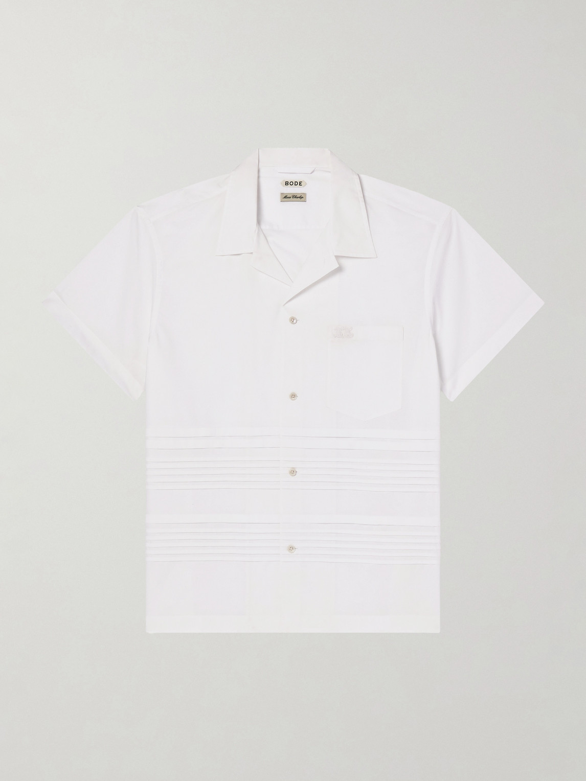Chamomile Camp-collar Logo-embroidered Cotton-poplin Shirt In White