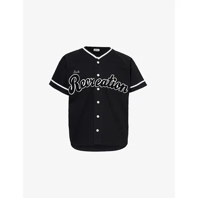 Mens Baseball Velvet-patch Cotton-poplin Shirt Black Xl