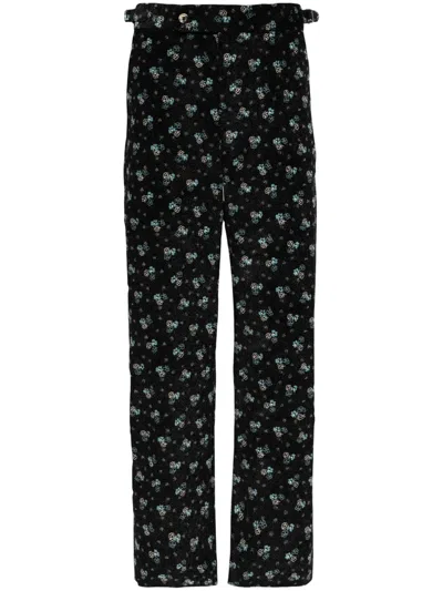 Floral-embroidery Straight-leg Trousers In Neutrals