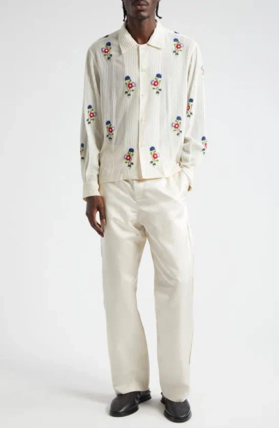 Garden Party Straight-leg Bead-embellished Linen Trousers In Neutrals