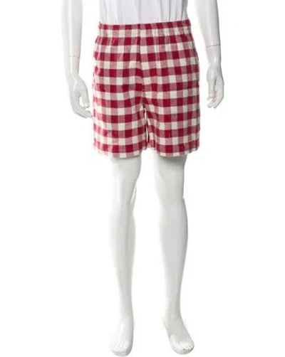 Pre-owned Plaid Print Flat Front Shorts In Red