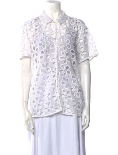 Pre-owned Lace Pattern Short Sleeve Button-up Top In White
