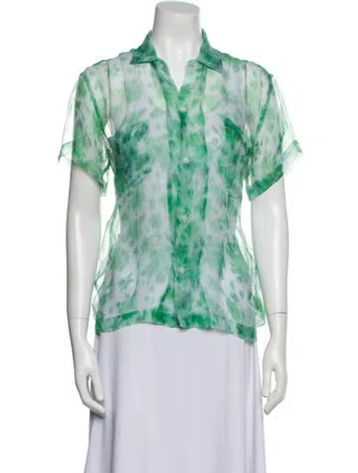 Pre-owned Patterned Short Sleeve Button-up Top In Green