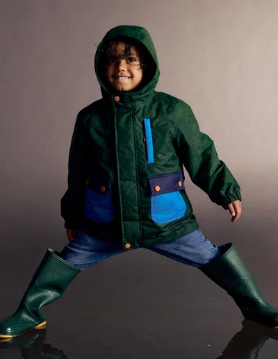 Kids' 4 In 1 Waterproof Coat Blue/green Colourblock