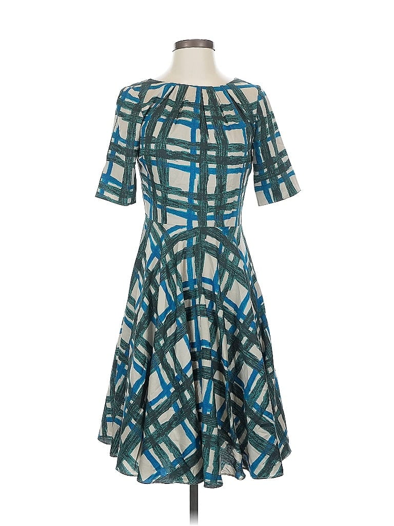 Pre-owned 3/4 Sleeve Top Blue Polka Dots Pattern V Neck Tops