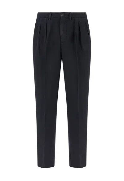 Garment Dyed Linen Two Pleated Trousers In Blue