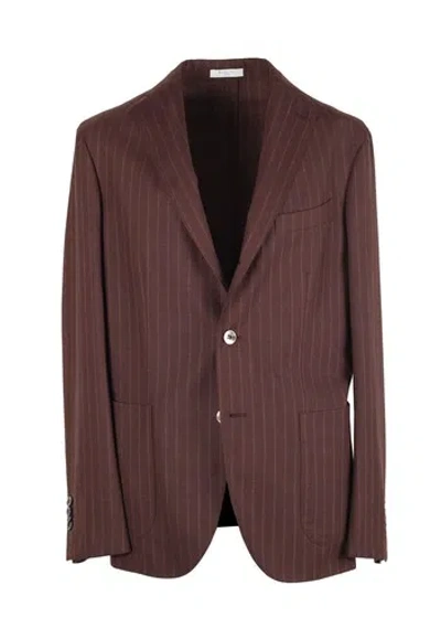 Pre-owned "k.jacket" Brown Striped Wool-cotton-cashmere Unlined Jacket 50 40