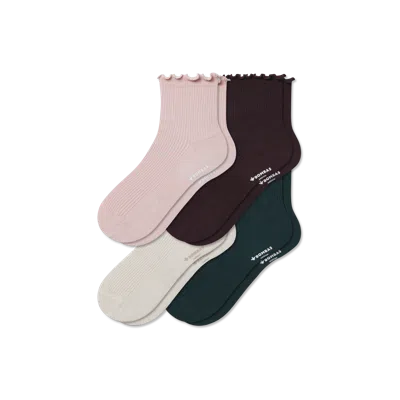 Ruffle Rib Half Calf Sock 4-pack In White