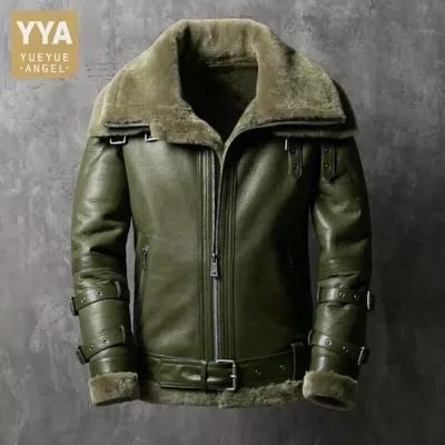 Pre-owned Multi Men's B3 Raf Flight Aviator Real Sheepskin Shearling Leather Jacket In Multicolor