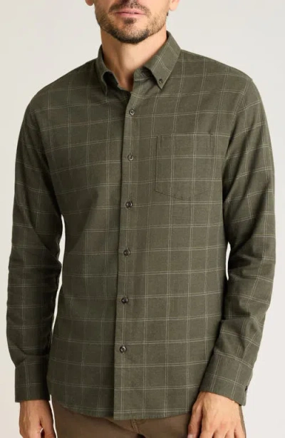Everyday Windowpane Check Lightweight Cotton Stretch Flannel Button-down Shirt In Gray