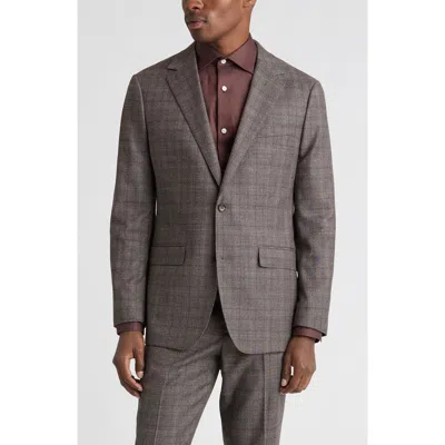 Jetsetter Slim Fit Brown Glen Plaid Knit Wool Suit Jacket In Gray