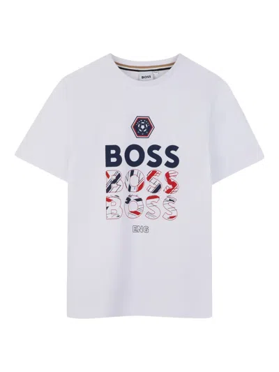 Boss Kidswear Kids' Tipped Cotton Polo In White