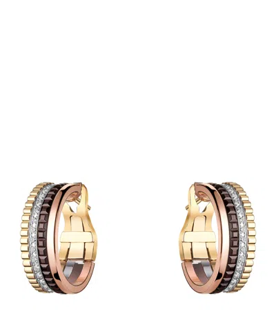 Mixed Gold And Diamond Quatre Classique Hoop Earrings