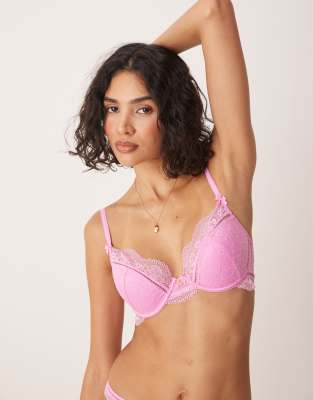 Vivienne 3d Floral Lace Balconette Bra In Pink