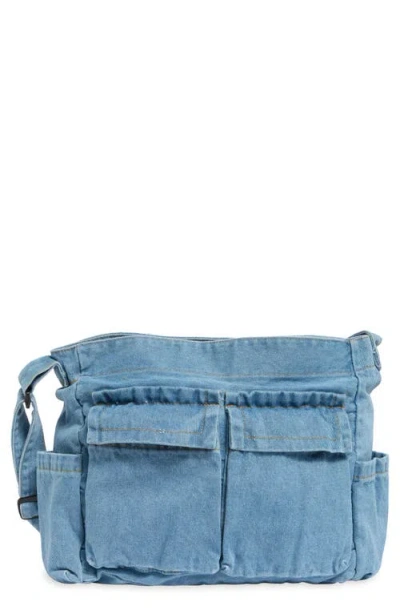 Fleece Detail Off The Shoulder Sweatshirt In Blue
