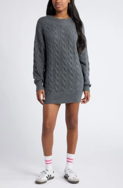 Cable Long Sleeve Sweater Dress In Grey Medium Charcoal Heather