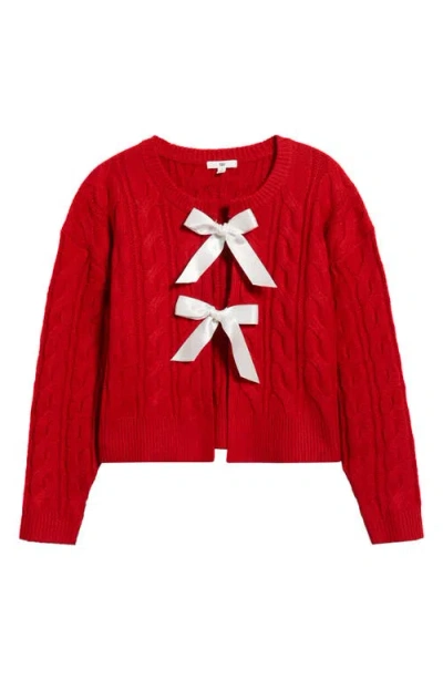Cable Bow Tie Cardigan In Red