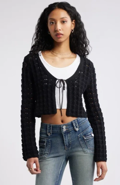 Tie Front Scoop Neck Cotton Poplin Peplum Top In Black