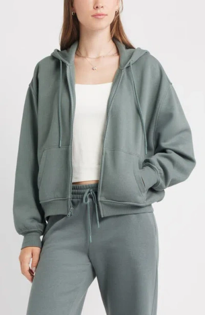 Relaxed Cotton Blend Zip Hoodie In Green