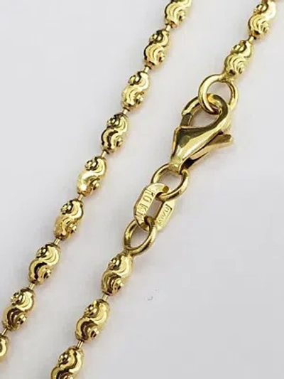 Pre-owned Real Italian Yellow Gold Diamond Cut Barrel Chain 2.5mm Necklace Oval 22 Inches
