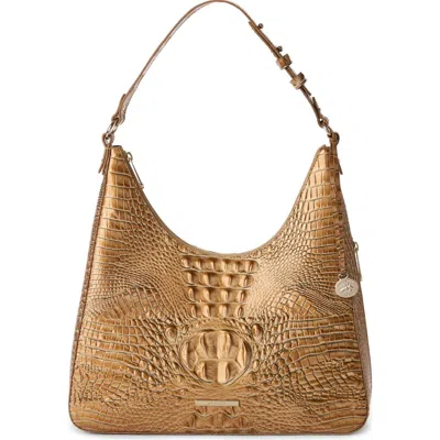 Adrian Croc Embossed Leather Shoulder Bag In Brown