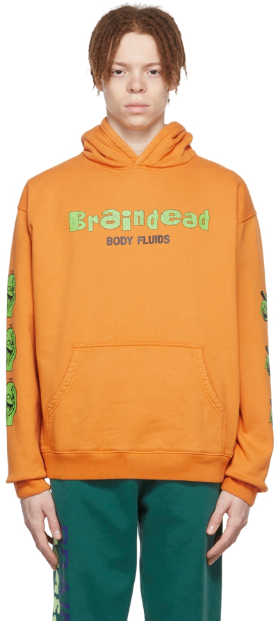 Orange Cotton Hoodie In Light Brown