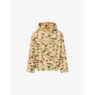 Mens Multi Green Brushstroke-print Smock Cotton Top