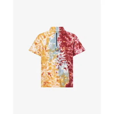 Mens Terracotta Tie-dyed Quarter-zip Cotton Polo Top Xl In Brown