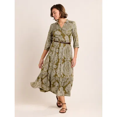 Skye 3/4 Sleeve Shirt Midi Dress In Green