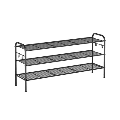 44.9" Wide 3-tier Metal Shoe Rack With 4 Hooks Ink Black