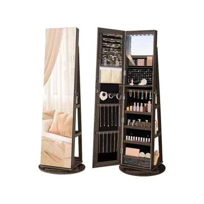 Rustic Brown 360° Swivel Lockable Jewelry Armoire