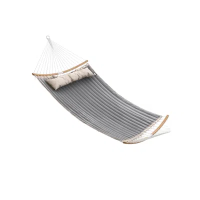 Quilted Hammock With Curved Bamboo Spreaders In Gray