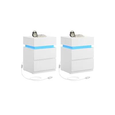 Nightstands With Led Lights, Set Of 2 In White