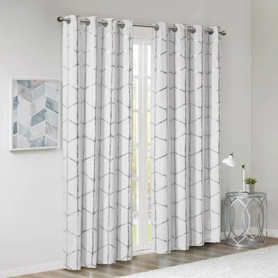 Total Blackout Metallic Print Grommet Top Curtain Panel(only 1 Pc Panel) In White