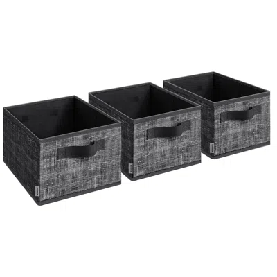 Storage Baskets, Set Of 3 Fabric Storage Bins, 11.8 X 7.9 X 5.9 Inches, Foldable Closet Organizer Fo In Black