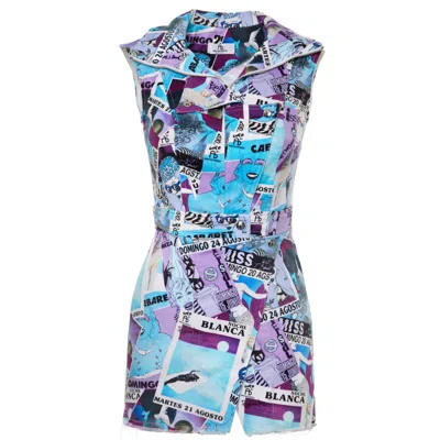 Women's Blue / Pink / Purple Ibiza Style Blue Purple Printed Miniskirt - Yves Uro Tribute In Blue/pink/purple