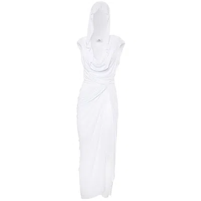Women's White Sleeveless Hooded Long Dress - Hedonist Goddess