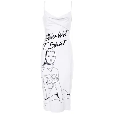 Women's White Printed Sleeveless Sheath Dress - Miss Wet T-shirt