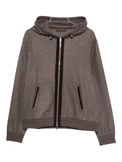Linen-virgin Wool Zip-up Hoodie In Grey