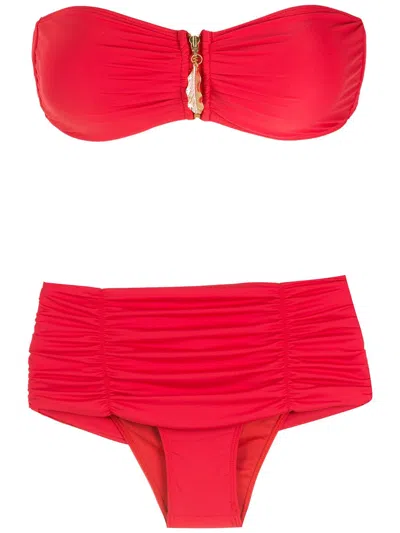 Leaf-detail Bikini Set In Red
