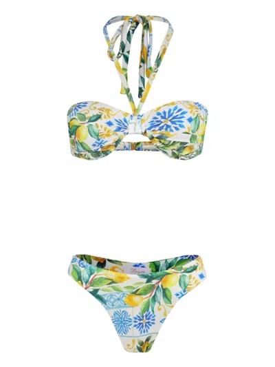 Lemon-print Bikini St In Green