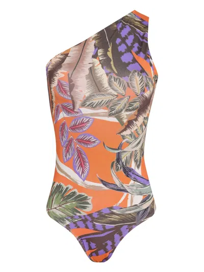 Camila One-shoulder Leaf-print Swimsuit In Multi