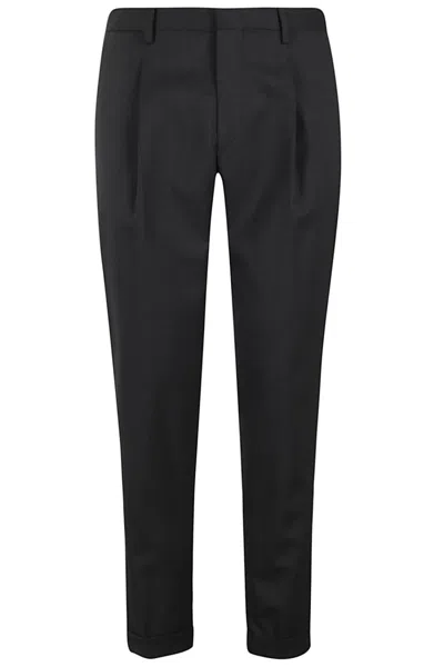 Tailored Black Virgin Wool Trousers With Cuffed Hem In Blue