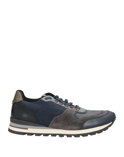Man Sneakers Navy Size 12 Leather, Textile Fibers In Multi