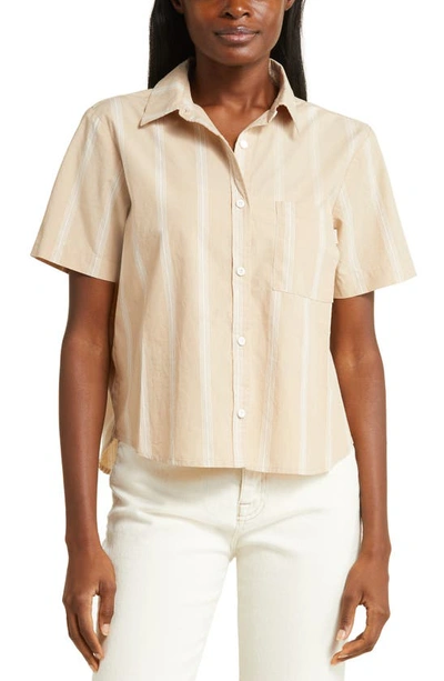 Sidney Stripe Short Sleeve Cotton Button-up Shirt In Sesame