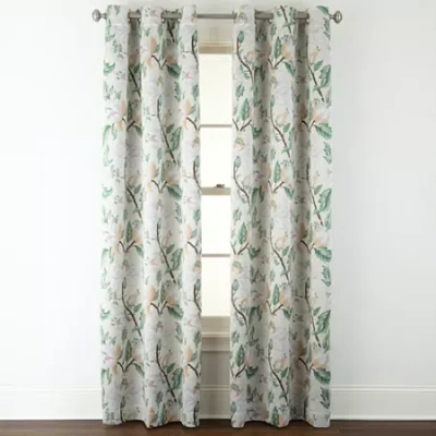 Geneva Print Grommet Top Blackout Single Curtain Panel In Green