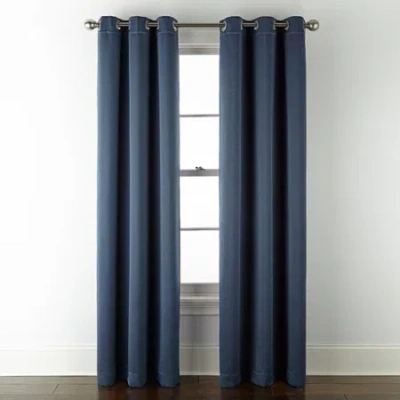 Geneva Solid Grommet Top Blackout Single Curtain Panel In Blue