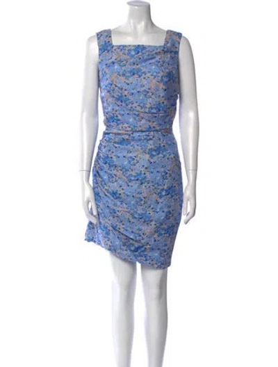 Pre-owned Floral Print Mini Dress In Blue