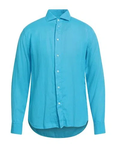 Man Shirt Turquoise Size 15 ¾ Linen In Blue