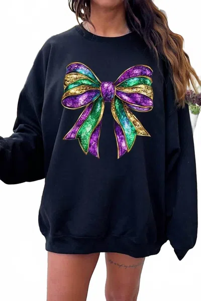 Mardi Gras Bow Sweatshirt In Black In Blue